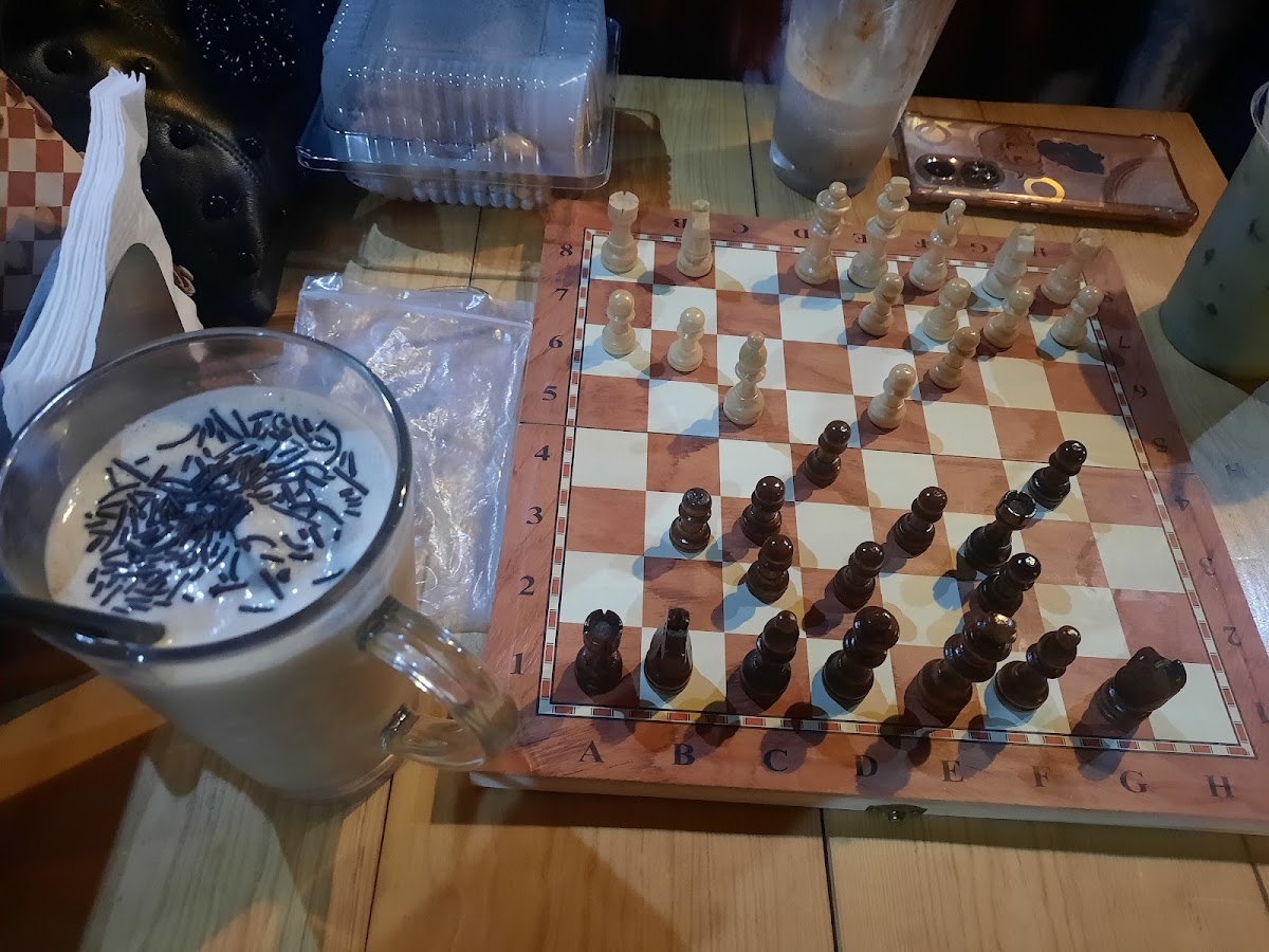 The moment you step inside, you are enveloped by an ambiance that blends warmth and creativity. The thoughtfully designed interiors invite you to settle in, whether on the comfortable first floor or looking out over the street from the charming second-level seating. Here, you can enjoy a game of chess or dive into one of the books available for your enjoyment while sipping on a perfectly brewed cup of coffee.